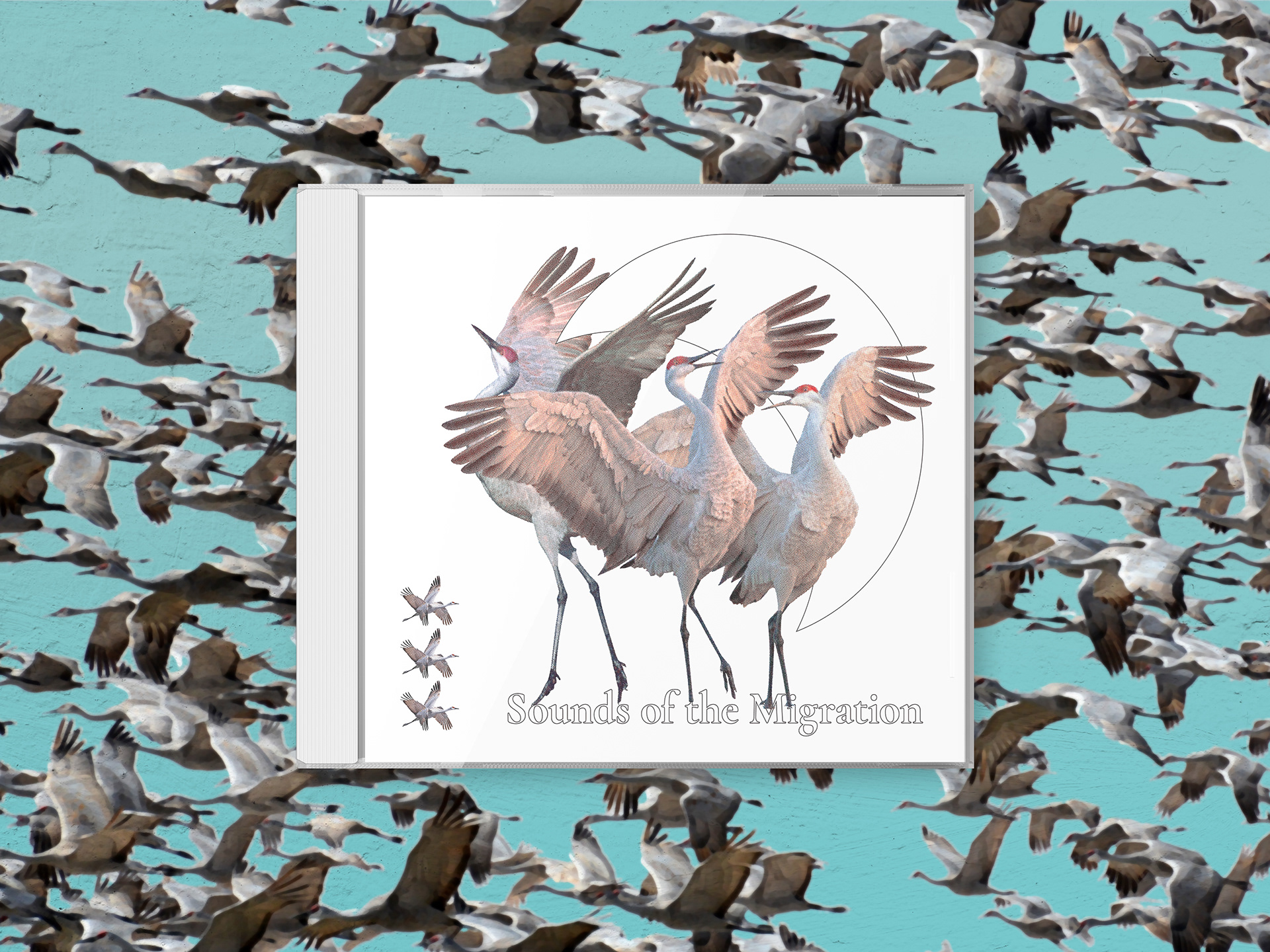 YEAIKNOW has a long-standing collaboration with an environmental scientist, Benjamin Gottesman, who records and analyzes sounds by installing recorders in nature (i.e., coral reef, iceberg, jungle, etc.) to study the human impact to the wildlife in the environment. Our designs have been instrumental to Benjamin and his work in that it elevates what could be a dry subject matter with bold, eye-catching design. Most recently, in 2018, he reached out to YEAIKNOW to design the covers of an alternative nature sound album, of the sandhill crane of Nebraska, which was also funded and released by the Crane Trust in Nebraska. We aimed to not overwhelm the visual design by choosing to simply place cut-off of cranes on a white background and fading the presence of the text by outlining with thin strokes giving the visual excitement to the CD itself which features an abstract illustration of the sandhill cranes in its environment.